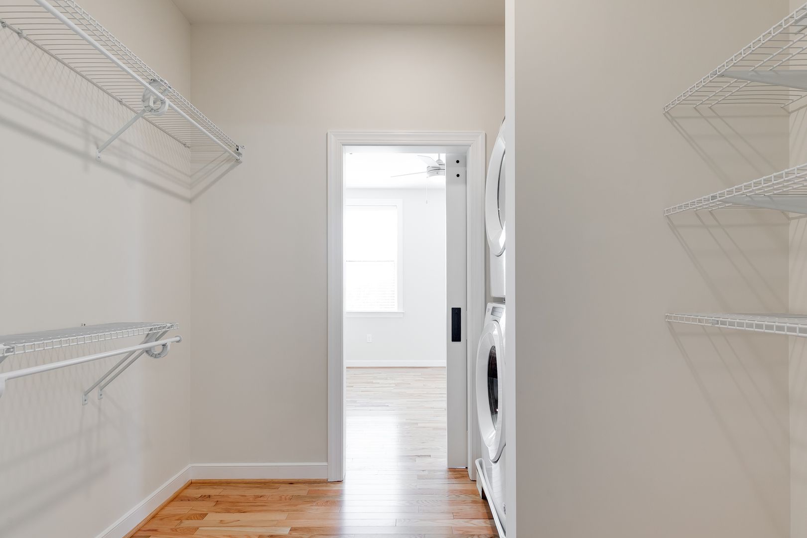 Oversized Walk-In Closets – Significantly larger than standard apartment storage.