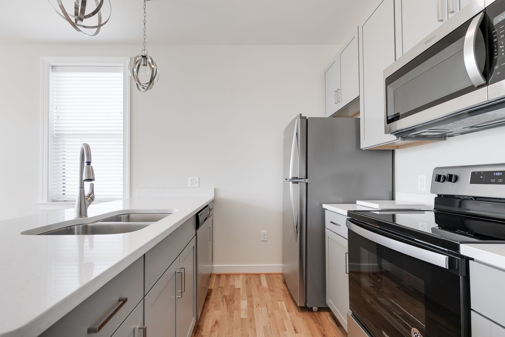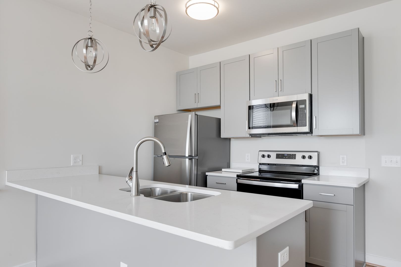 Chef-Inspired Kitchens – Sleek quartz countertops, stainless steel appliances, dishwasher, and garbage disposal.