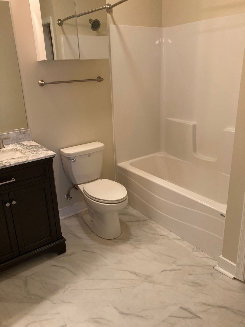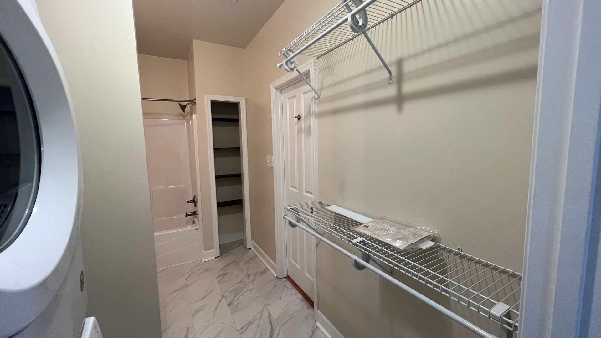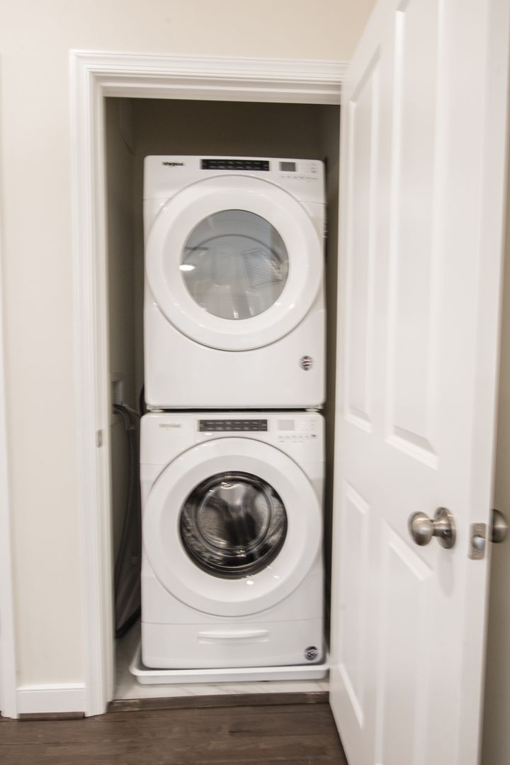 Leaving the main living area, you'll enter your HUGE bathroom equipped with a shower/tub combo, large bath vanity with plenty of storage underneath, linen closet shelves and a medicine cabinet. The bathroom also connects to the laundry room with has a stack-able full-size front loading washer/dryer and extra closet shelves for additional clothing storage.